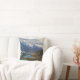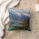 Um travesseiro com uma bela fotografia da natureza. Apresentando montanhas alpinas com neve e lagoas tranquilas enfiadas a dentro do vale dessas montanhas majestosas.