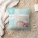 Anuncie o nascimento do seu novo bebê com este doce travesseiro decorativo de padrão de gingham diagonal aqua-azul. Personalize adicionando uma foto, um nome e a data de nascimento do seu bebê.