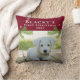 Travesseiro de Foto de Natal Vermelho e Cachorro de Feliz Natal. Primeiro travesseiro de fotos de filhotes de Natal bonito com galhos de pinheiro de Natal e flocos de neve brancos em fundo vermelho escuro. Personalize o travesseiro com a foto, o nome e o ano do seu cachorro - insira a foto favorita do seu cachorro. Você pode usar este travesseiro personalizado para qualquer animal de estimação. Um bom feriado.