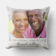 Uma almofada como presente, celebrando o 60º aniversário de casamento diamante. Um fundo branco clássico e elegante, decorado com diamantes artificiais. Personalize e adicione sua própria foto de alta qualidade do casal feliz. O texto: Os nomes são escritos com um estilo de letra manuscrita moderna preta. Modelos para nomes e data.