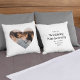 Travesseiro decorativo moderno de aniversário de casamento para marido e esposa. Personalizado com uma fotografia do coração do dentro casal na frente, o nome da família Sr. e Sra. e todos os anos no verso com letras negras. Impressão frente e verso Para editar o posicionamento da imagem, clique no botão para editar a design e, em seguida, em "recorte".