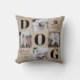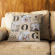 Travesseiro personalizado de homenagem para animais de estimação com 4 fotos de você adorado cãozinho, um fundo de impressão, letras que soletram DOG, as palavras "para sempre em nossos corações", uma pata de cachorros com um ditado de recordação, e seu nome.