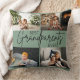 Modelo de colagem de 4 fotos verde moderna e minimalista, travesseiro personalizado para presente de aniversário de avós. Adicione suas fotos favoritas de quatro netos com "Melhores Avós" em escrituras modernas e nomes de netos. Se precisar de ajuda para a personalização deste design, por favor, envie-me uma mensagem de orientação. Crédito: Foto de Christian Bowen sobre Unsplash