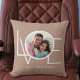 Este Travesseiro de Fotografia do Melhor Pai é decorado com a palavra AMOR em branco sobre fundo bege. Facilmente personalizável com sua foto. Faz um presente de Dia de os pais especial.
