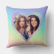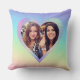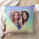 Este travesseiro decorativo personalizado apresenta um tema de amor de Namorados com um quadro cardíaco fotográfico. O fundo é um padrão de gradação arco-íris com moldura holográfica em estilo arco-íris. Uma amostra de fotos de melhores amigos é colocada no centro.