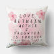 Fotos personalizadas de flores cor-de-rosa-mãe e filha e rosas guardam o travesseiro decorativo de dia de as mães para presente mãe de filha para mãe com nome personalizado e uma mensagem curta para mãe atrás do travesseiro.