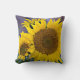 Um doce design de travesseiro decorativo para qualquer sala mostra uma fotografia de perto de um grande girassol amontoado com pequenos. Pode fazer um presente excelente para o amante da natureza. Fotografia ©Patricia AZ Phillips
