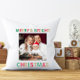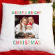 Foto simples e personalizada de "feliz e brilhante" natal atira almofada com tipografia moderna e sanguinária sobre um simples fundo branco nítido. A foto pode ser facilmente personalizada para um design tão único quanto sua família especial! A imagem mostrada é apenas para fins de ilustração para ser substituída pela sua própria foto. A imagem marcadora é de uma mãe e filho envolvendo presentes juntos pela árvore de natal em uma casa moderna minimalista. #natal #holidaycard #moderna #família #ouro
