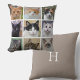 Travesseiro personalizado de fotos de gatos e quadros brancos. Monograma sobre fundo bege no verso. Cada foto pode ser personalizada.