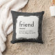 Dictionary definition in bold black text for FRIEND on white abstract design and black leather background