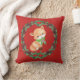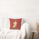 Travesseiro decorativo festivo apresenta raposa branca e coroa oca-cola em fundo vermelho. Personalizar com nome ou mensagem especial no retorno