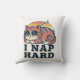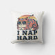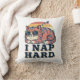 A playful square pillow showcasing a retro cat proudly committed to nap time.