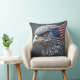 A futuristic metallic eagle head with a floating American flag, rendered in stunning 3D detail and shine.