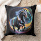Um cavalo dinâmico é representado galopando com energia, cercado por luzes vibrantes e girando em um fundo escuro, criando um senso de movimento e fantasia. O uso de cores neonatais acrescenta à composição uma sensação mística e de outro mundo.
