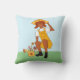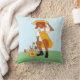 Gardening Girl com flores desenhando Travesseiro feminino. Um desenho de uma garota com flores em uma lata de água.