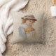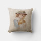Adorável tema de arte vintage, com uma jovem vestindo um chapéu com flores margaridas e mastigando um punhado de filhotes com seu avental. Linda maldita bege macio em fundo na frente e atrás.
