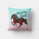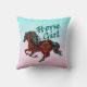 Este é um Travesseiro decorativo de Cavalo Único "Um dos Tipos"! Ele apresenta um Design sudoeste de um Cavalo Galopante em um Fundo Turquesa e Rosa e as palavras..."Garota do Cavalo"! Design De Arte Original Pelo Artista Kerry Miller.