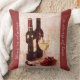 Almofada garrafas, uvas e vidro de vinho