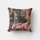 Um travesseiro romântico engraçado apresentando um gatinho em um banco de balanço cor-de-rosa com flores. Bom para um amante de gato e Dia de as mães ou Dia de os namorados.