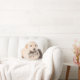 Almofada gatinho dorme nas mãos do cachorro