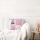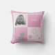 O gatinho cinzento bonito e as flores gráficas estão decorando este travesseiro, com bolinhas brancas e fundo cor-de-rosa. Você pode personalizá-lo com a foto e o nome da sua criança.