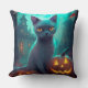 Almofada Gato Azul Russo Halloween Com Pumpkins Assustado