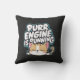 Gato bonito sonolento, com "motor está correndo" cinza escura travesseiro gatinho adormecido com texto "Purr - engine está correndo", gato em adorável estilo japonês.