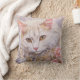 Um travesseiro com uma bela ilustração. Um gato branco de cabelos compridos que parece real e elegante. Cercado por flores cor-de-rosa, joias de ouro e diamante.