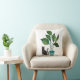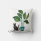 Pintura aquosa moderna de um gato preto sentado ao lado de uma planta caseira num pote azul turquesa. Arte original de Nic Squirrell. Excelente para amantes de gatos e plantas domésticas.