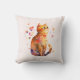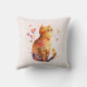 Travesseiro com uma ilustração adorável de aquarela. Um gato de mesa laranja parecendo amigável e feliz com corações girando em volta.