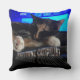 A obra de arte original de ZoeSPEAK neste Travesseiro decorativo inclui uma fotografia original de um gato dormindo em frente a uma televisão. O gato é um calico, com patas brancas chegando em direção à câmera. Um programa sobre finanças está na TV, com um gráfico azul brilhante incluindo a expressão "FINANCIAMENTO DE CAPITAL DE RISCO". Sob a gata, mostrando seu interesse em assuntos financeiros, estão as palavras "VENTURE CATIPALIST", em texto com um padrão de pele de gato e um brilho azul atrás dele, como o brilho azul atrás do pelo do gato nas bordas.
