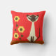 Gato siamês entre flores amarelas daisy e design estilizado de animais em fundo vermelho