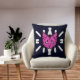 Uma Cabeça de Gato Roxo e Listras Brancas Em um fundo marinho profundo definem como elegância, beleza e carinho seu travesseiro decorativo de escolha deve ser. Este design é cuidadosamente preparado para satisfazer os desejos de animais, animais de estimação e amantes de gatos. Use as ferramentas de design para alterar as imagens para sua personalização. Para obter suporte e solicitações especiais, entre em contato com catsapparellovers@gmail.com