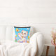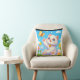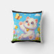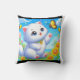Um gato branco fofo está brincando com uma borboleta, impressa em um Travesseiro.
