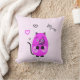 Travesseiro decorativo com gato lilás fofo com corações em fundo rosa