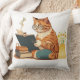 Almofada gato-mãe lendo um livro e um café de bebendo