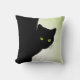 Gato preto vadio com olhos verdes esmeraldas olha por trás da parede preta para uma sala verde.