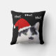Fotografia bonita de um gato rabugento vestindo um chapéu de Papai Noel em almofadas de Natal.