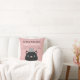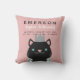 Um travesseiro decorativo cor-de-rosa do stats do nascimento para o berçário que caracteriza um gato real que veste uma coroa de prata e um envoltório real aparou com pele. Adicione o nome da sua criança e o stats do nascimento em pias batismais preto e branco. A parte traseira caracteriza um teste padrão chique da verificação em cores de harmonização.