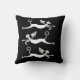 três gatos voadores em um design de almofada preto e branco em greve