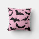 Rosa é a maneira moderna de celebrar o Halloween. Este travesseiro rosa e preto tem muitos e muitos morcegos pretos voadores. A parte de trás deste travesseiro decorativo personalizado é um preto sólido. Há uma camada oculta que apresenta o padrão frontal. Ligue-o se quiser que o travesseiro seja da mesma frente e trás. Este padrão de morcegos fofo é apresentado em vários itens, visite meu compro para ver todos eles.