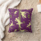 Almofada na moda roxa e verde, impressa com um padrão moderno de lagartixa. O padrão apresenta creme Geckos, detalhe étnico verde sábio, em um fundo roxo quente.