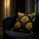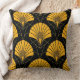 Decoração de luxo moderno de LUVINK. Este travesseiro decorativo de luxo apresenta incríveis motivos de fã Art Deco, de ouro metálico. Precisão geométrica contra uma base negra profunda cria sofisticação ousada para os interiores modernos. Um acessório Luxe Deco projetado para ser o sotaque preto e dourado definidor para seu sofá ou poltrona favorita.