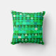 Travesseiro quadrado com padrão em bandas de formas geométricas, em uma tomada moderna de um padrão tribal, em tons de verde-mar, verde-jade, aqua e turquesa em um fundo verde esmeralda profundo