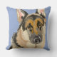 Esta almofada, travesseiro decorativo, apresenta uma linda pintura de um alsaciano preto e bronzeado, ou de um cão German shepherd. Isso daria um presente perfeito para um amante de cachorro, e ficaria adorável no salão ou quarto.