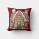 Cushion da Casa Gingercake. Uma casa colorida de pão de gengibre, encharcando gelo como uma alegria de férias, sentou-se rodeado por canas de açúcar, tentando Papais noeis com delícia!