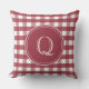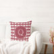 O padrão clássico do crimson vermelho e branco do estilo gingham é o fundo de um grande monograma inicial. Ambos os lados são idênticos, pelo que só é necessário acrescentar o primeiro. Na moda é excelente para uma varanda solar ou sala de estar, especialmente.