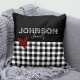 O design de travesseiro de gingham da Sra. Monogramas apresenta o seu nome familiar, o popular padrão de verificação de búfalos preto e branco, em um fundo preto. Os sotaques são xadrez de búfalo vermelha e preta. A metade inferior do recurso de travesseiro que corresponde à verificação de búfalos preto e branco / padrão de gingham e a metade superior é preta. Com todo aquele vermelho e verde em volta da casa nos feriados, certamente este travesseiro preto e branco se destacará! #BuffaloPlay #Gingham #BuffaloCheck