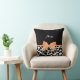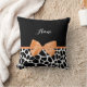 Um travesseiro decorativo de girafa preto e branco, com uma fita laranja giratória, presa em um arco de na moda. Personalize este design de impressão de animais modernos adicionando seu nome. O lado inverso tem um padrão de girafa preto e branco. Imagem impressa plana, não arco real.