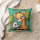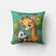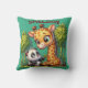 O panda mais bonito está dividindo seu bambu com uma girafa em verde e marrom. Almofadas Throw.